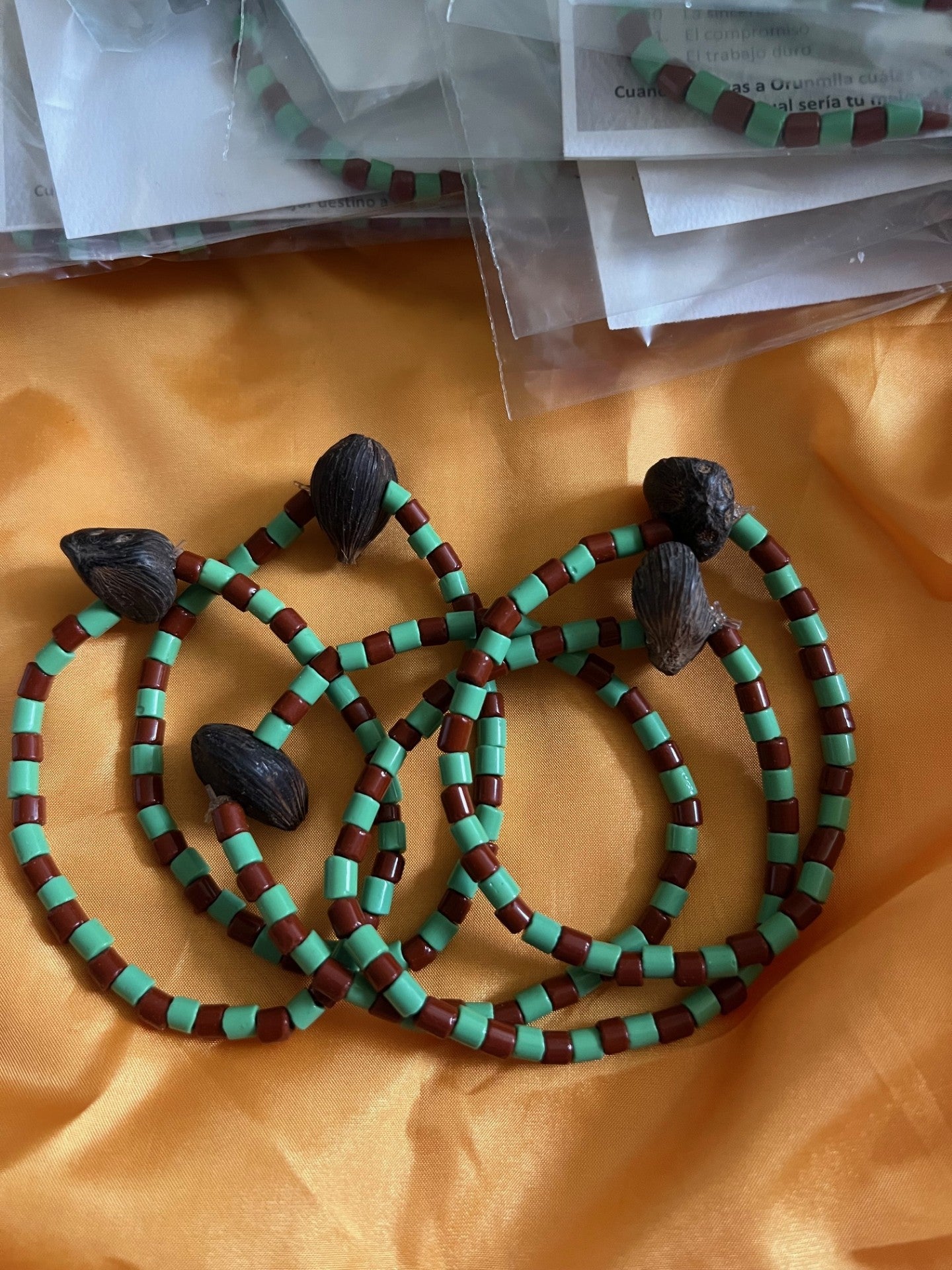 Ide de Orula Orunmila con ikin 4 ojos
